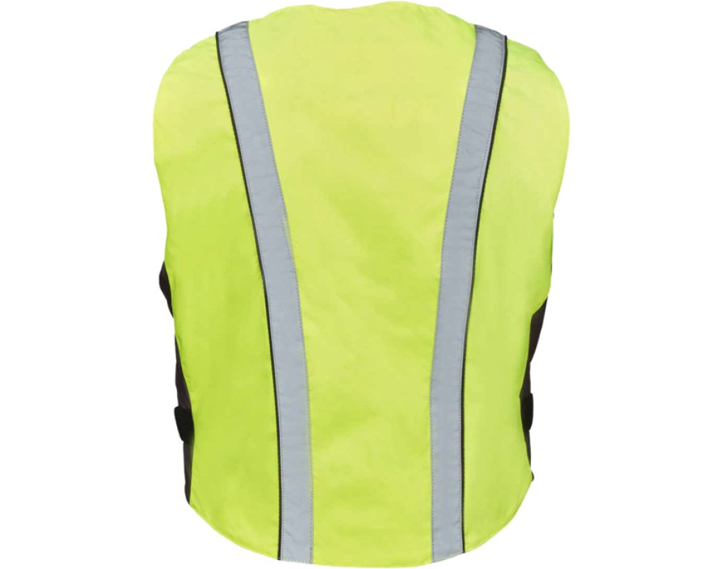 Yeleğin yan kısımlarındaki esnek materyal ve her iki taraftaki cırtlı kapama sistemi, kişiye özel uyum sağlar ve rahat bir kullanım deneyimi sunar. Reflektörlü şeritler, düşük ışık koşullarında sürücünün görünürlüğünü artırır ve güvenli sürüş sağlar.