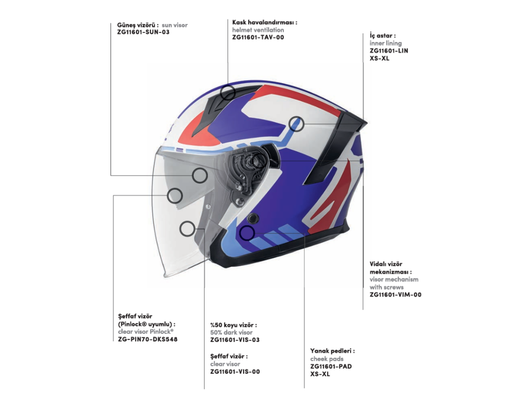 - Tam Uyumluluk: GMS Vectus kask modeli için özel üretim orijinal yedek parça.